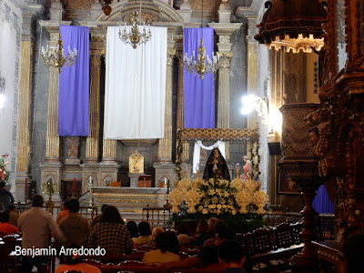 El traje, carácter y genio de los indios pondré después. El traje de las negras y mulatas es una saya de embrocar (a modo de basquiña pequeña de seda, con sus corchetes de plata, y por ruedo una buena cinta o listón), la cual traen sobre la cabeza por lo angosto de la cintura de la saya; traen sus guardapiés, que llaman “enaguas”, de tela de China, con flecos de Holanda o encajes ricos, y calzado honesto. Y esta hermosa prenda de honestidad, gravedad y decencia sobresale en todas las mujeres del reino, pero mucho más en las señoras.